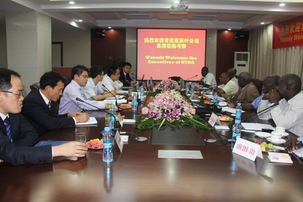 集團(tuán)資訊2014年9月上旬,肯尼亞茶葉發(fā)展有限公司董事Philip Kibirech NG’Etich先生一行七人應(yīng)邀來(lái)我公司參觀考察,旨在加深雙方了解和建立互惠共贏的合作。總經(jīng)理徐洪良代表公司對(duì)他們的到來(lái)表示熱烈歡迎,總會(huì)計(jì)師王義生、總工程師胡鴻煌及海外公司相關(guān)負(fù)責(zé)人參加了會(huì)見(jiàn)并陪同肯尼亞客人參觀了公司總部各部門(mén)。