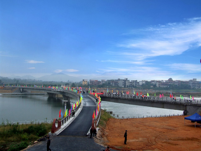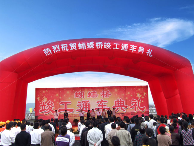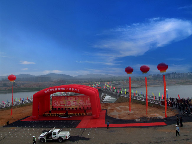 九月金秋,流光溢彩。2010年9月30日,在祖國華誕即將到來之際,我公司承建的宜春市秀江三級(jí)抬水壩及景觀橋(又稱為蝴蝶橋)工程舉行了竣工通車典禮。